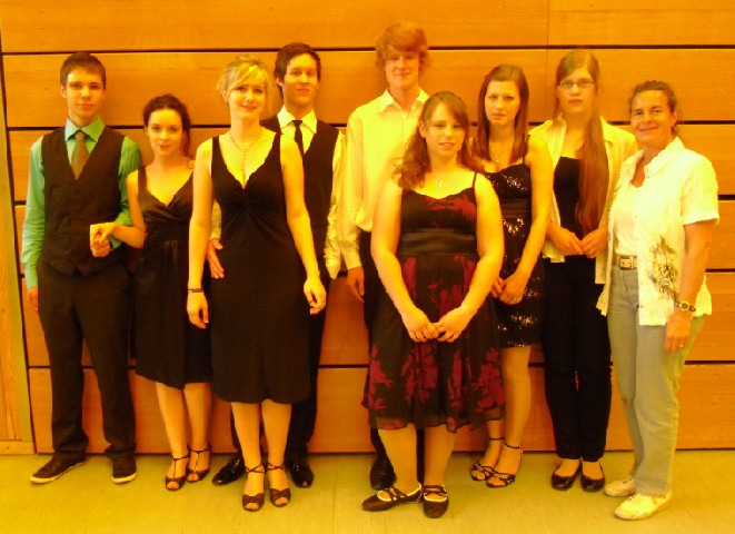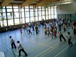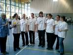 Eine Gruppe von Schülerinnen aus dem BG (Kl. 12 und 13) nahm an der Super-Kombi des Deutschen Tanzsportverbandes teil. sie hatten im Sportuntericht die Aufgabe, sich einen Tanz auszudenken und diesen mit schriftlicher Tanzbeschreibung und Video einzureichen. Der Erfolg war deutschlandweit der 4. Platz. Am 02.04.05 fuhren sie dann nach Enzklösterle und brachten einer Gruppe von 150 Tanzsport-Übungsleitern (im Rahmen einer Fortbildung zum Thema Breitansport) den Tanz innerhaltb von 15 Minuten bei. Der Tanz kam bei den Teilnehmern gut an, aber leider waren die andren Tänze einfacher zu lernen und belegten die vorderen Plätze. Insgesamt hat die ganze Aktion aber viel Spaß gemacht und die Choreographie der Gruppe mit ihrem Tanz "Black & White" wird nun in allen Tanzsportvereinen verbreitet. Weitere Bilder und die Tanzbeschreibung folgen!