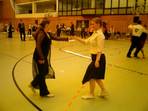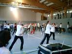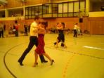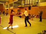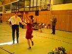 Zunächst tanzten Elena und Peter eine bezaubernde Rumba, dann zeigte der ganze Kurs den aktuellen Vizemeister "Tanz des Jahres 2007" im Breitensportbereich, motivierte einige Zuschauer, mit zu tanzen (denn der Tanz ist in 10 Minuten zu lernen) und zum Abschluss folgte noch ein Langsamer Walzer von Florian und Elena.