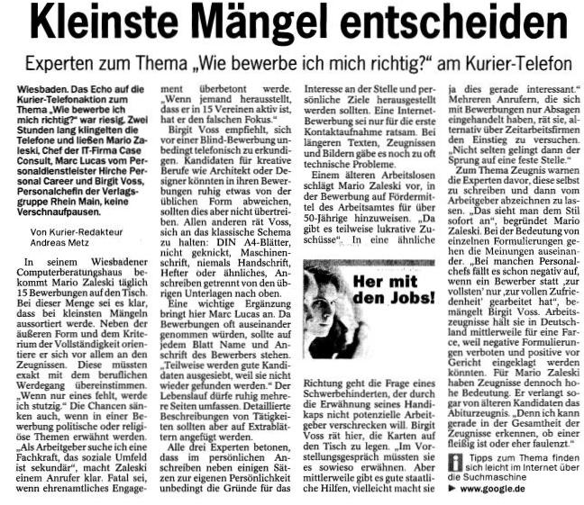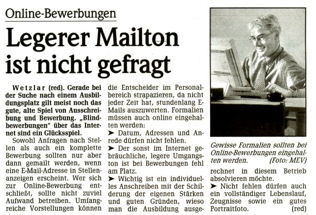 - Tipps für online-Bewerbungen, aus: Weilburger Tageblatt, 24. August 2002