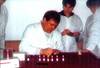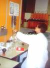 Frau Teschke beim Ansetzen von Proben im März 1999... wenn man bloß wüsst', wieviel drinnen ist?