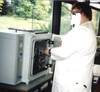 Katja Prothmann entsorgt fachgerecht Bakterien im Praktikum Mikrobiologie, Mai 2000
