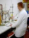 Dominik Wolf bei der Bestimmung von wasserdampfflüchtigen organischen Säuren nach DEV S 19 mit Apparatur nach Antonacopoulos
