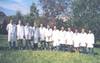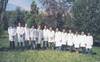 Dr. May macht ein Gruppenbild mit Klassenleher Herr Will (links)
