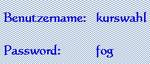 Um die Allgemeinen Hinweise zur Kurswahl bzw. die Kurslisten einsehen zu können, loggen Sie sich bitte mit der abgebildeten Zugangskennung ein!