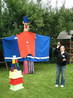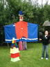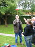 (vb) Mit Trommeln und Jonglage waren die Schülerinnen und Schüler der Sozialassistenten 12 b mit ihren Lehrerinnen Birgit Leck und Veronika Becker auf dem Eppenaufest der Lebenshilfe in Limburg vertreten. Im Garten gegenüber dem Werkstattbereich schmückte ein großer Stoffclown den Einsatzort. Davor lagen Bälle verschiedener Größen, Teller, Tücher und Keulen, die zum Jonglieren aufforderten. Unter der fachkundigen und geduldigen Anleitung der Schülerinnen und Schüler traute sich so manch ein Besucher an die Bälle und Teller heran und ließ diese durch die Luft fliegen. Wer lieber auf Nummer sicher gehen wollte, hatte beim Dosen werfen immer einen Erfolg.