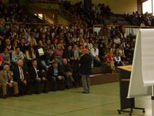 Prof. Böhm schaffte es, die vielen Zuhörer mit seinem abwechslungsreichen Vortrag und vielen Verknüpfungen zum Alltag, über die lange Zeit zu fesseln.