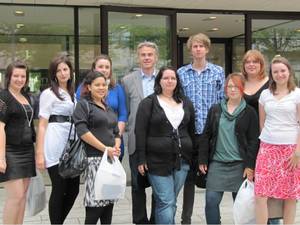 h. li.: Danielle Halm, Stephanie Widmaier, Katharina Scheid, Herr Gawinski, Jan Hennemann,, Mirjam Klingebiel, v. li.: Sarah-Ann Starks, Tanja Salagaeva, Lea Jarnicki, Anja Schmidt