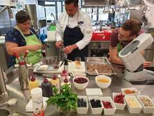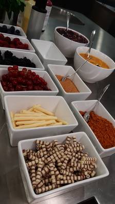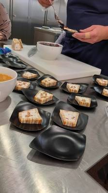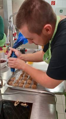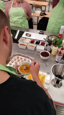 So wurde also ausprobiert. Neben einem Blumentopf aus Schoko-Karamell-Creme mit Minz-Gelee erfrischten wir uns auch an einem Popcorn-Parfait, einer Creme Brulee mit Lavendel, einem Spekulatius-Parfait im Baumkuchenmantel und weiteren spektakulären Kreationen. Es wurde geschlagen, dressiert, abgefüllt, dekoriert - ein traumhaft süßer Tag!