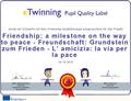 Limburg, den 20.12.2016: Die Adolf-Reichwein-Schule ist vom Pädagogischen Austauschdienst für ihr europäisches Schulprojekt „Friendship: a milestone on the way to peace - Freundschaft: Grundstein zum Frieden L’ amicizia: la via per la pace ausgezeichnet worden. Dafür erhielt sie von der Jury das eTwinning-Qualitätssiegel 2016 für beispielhafte Internetprojekte. Damit verbunden sind hochwertige Sachpreise und Urkunden zur Anerkennung.
