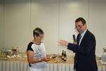 Dies war nicht leicht. Neben dem vielen Details und Basisinformationen zur Weinherstellung, wurde auch geprüft, welcher Wein zu welchem Essen passen könnte, und in Rebkunde wie auch in der Sektproduktion wurden die Teilnehmer auf Herz und Nieren geprüft. Letztgenannte hatten nach der Degustation am Ende des ersten Tages etwas Schonzeit, nicht jedoch die kognitive Leistungsfähigkeit der Seminarteilnehmer. Kurt Jannett, Lehrbeauftragter des Deutschen Weininstituts, zeigte nicht nur den beiden Caterin-Klassen, was wichtig ist, wenn man Deutschen Wein kredenzt. Ein kurzer Besuch von Schulleiter Ralf Abel und Landrat Manfred Michel bestätigte: die ARS hat mit diesem Weinseminar ein interessantes Modul im Lehrangebot, das Interesse schafft, nicht nur bei den angehenden stattlich-geprüften Betriebswirten der Fachschule für Wirtschaft.