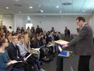 Thomas Mann betonte, dass es bei der Veranstaltung neben der Würdigung von Leistungen, auch darum gehe, dass die Schülerinnen und Schüler sehen sollten, was andere Gleichaltrige aus dem Thema gemacht hätten. Das könne einen selbst als Schülerin oder Schüler dann für die Teilnahme an Wettbewerben inspirieren. „Ich kann nur allen danken, die sich am Wettbewerb beteiligt haben, sowie denjenigen, die die Schüler dabei unterstützt haben, Herrn Andreas Waldhauer, Frau Dr. Christine Schneider, Frau Carmen Rosenstiel und dem Initiator der Regionalen Siegerehrung Roland Gawinski", sagte Thomas Mann abschließend.