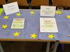 Die Aula der Adolf-Reichwein-Schule erstrahlte in Blau mit goldenen Sternen, denn die Schülerinnen und Schüler ermöglichten einen Einblick in ihre Arbeiten und gestalteten einen Markt der Möglichkeiten zum Austausch vor und nach der 4. Regionalen Siegerehrung am 13.06.2017. Neben vielen tollen Arbeiten der Schülerinnen und Schüler waren ein Schlagzeug, ein Klavier, viele Gitarren und Notenständer der ARS-Band Back2Basix zu sehen. Sie spielte sie unter anderen vor dem Redebeitrag der Schülerinnen der Q-Phase Birte Droste, Clara Hannappel und Johanna Lademann. Die drei gaben einen Ausblick auf den 65. EU-Wettbewerb, der das Motto „Denk mal – worauf baut Europa“ haben wird. Es soll um unsere Gemeinschaft mit Bürgern, Handwerkern, Baumeistern und Abenteurern gehen. Auch die Vereine sollen eingebunden werden, denn die Leichtathletik-EM in Berlin und die Fußball-WM in Rußland stehen ebenfalls im Blickpunkt des zukünftigen Wettbewerbs. Darüber hinaus konnten die Teilnehmer einen Einblick über die bundesweiten Ergebnisse gewinnen, denn die Europäische Bewegung erstellte ein