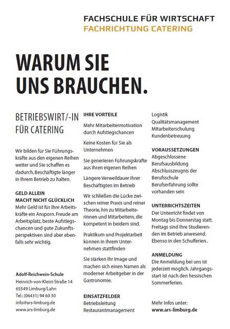 - den Abschluss "Betriebswirt/in für Catering", die Ausbildereignungsprüfung, Fachhochschulreife, Weinberater, Sprachzertifikat.... und einiges mehr.