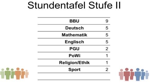 In Stufe II werden die Schülerinnen und Schüler in einer Klassengröße von max. 25 Jugendliche / junge Erwachsene unterrichtet.