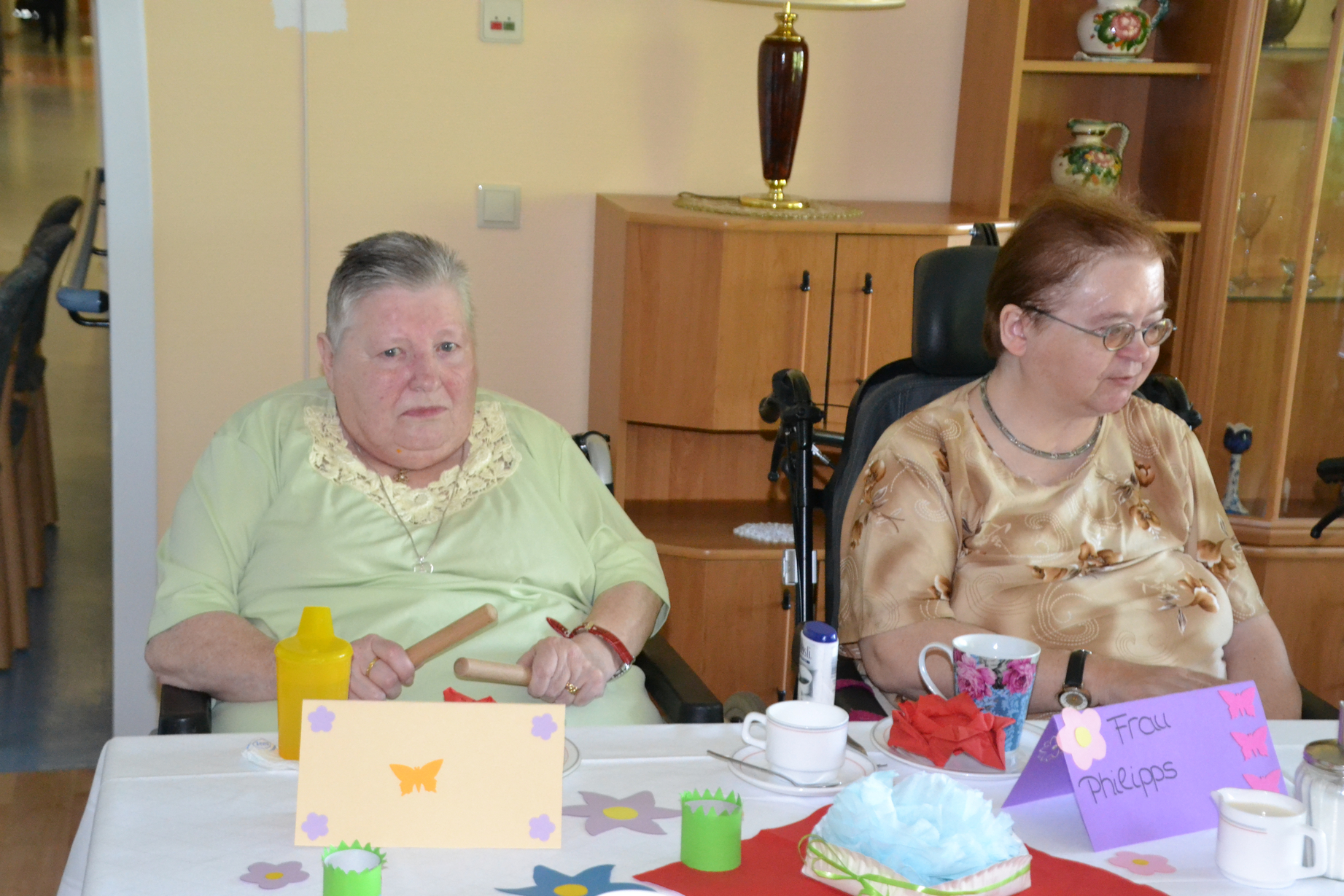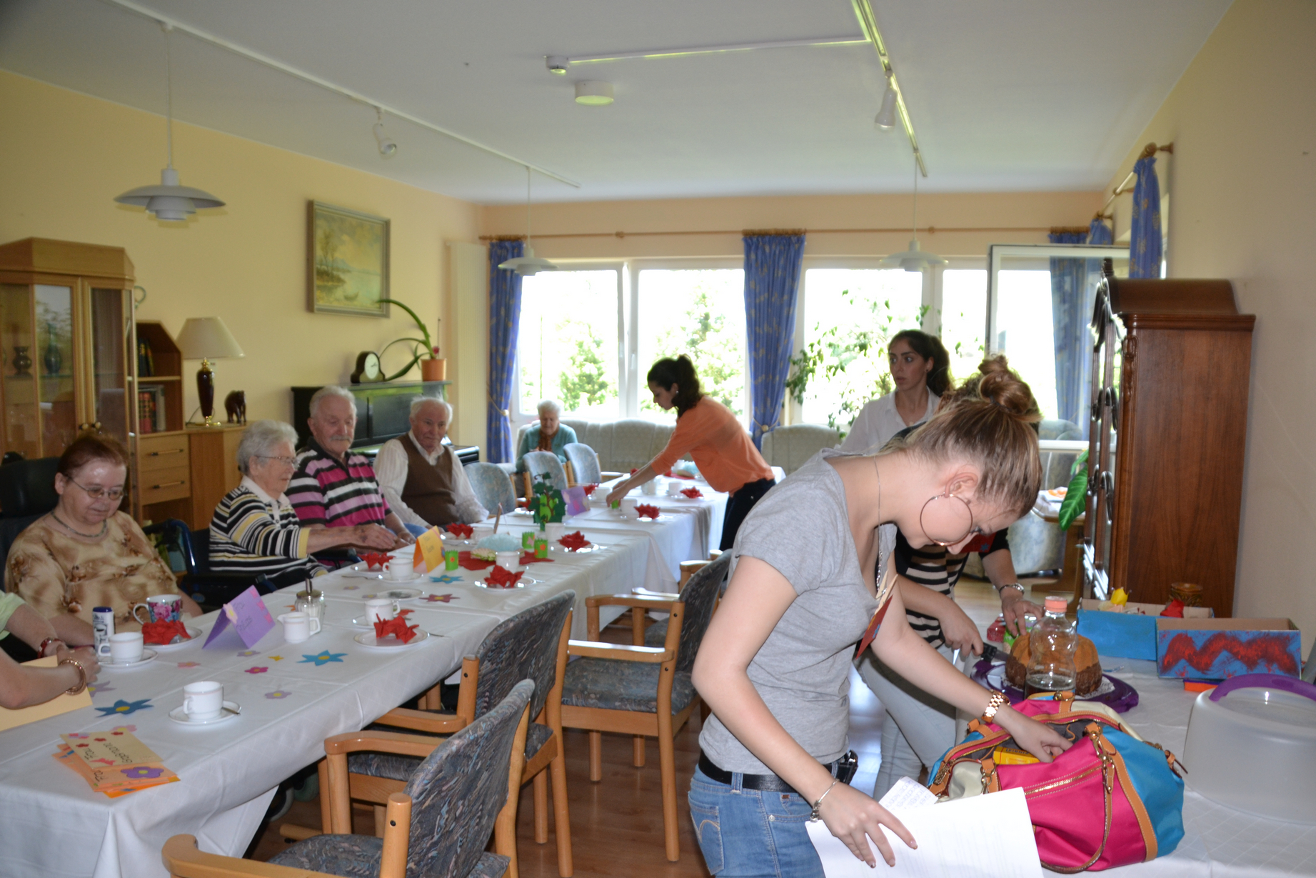 Die Schüler hatten für die Bewohner auf den Etagen jeweils unterschiedliche sommerliche Programme erarbeitet. Dazu wurden von den angehenden Sozialassistenten in der Schulküche der Wilhelm-Knapp-Schule leckere Kuchen gebacken und die Kaffeetafeln mit selbst hergestelltem Tischschmuck ansprechend dekoriert. Die Senioren konnten zudem mit gemeinsamem Singen von bekannten Liedern, von den Schülern angeleiteten Sitztänzen, Gedichten und Spielen einen abwechslungsreichen Nachmittag verbringen.