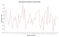 Die Messung erfolgte am Donnerstag, den 27. Mai 2004 von 10:15 - 11:30 Uhr. Das Verkehrsaufkommen betrug in der Wiesbadener Straße 774 KfZ pro Stunde und in der Zeppelinstraße 682 KfZ pro Stunde. Der mittlere Schallpegel ist an beiden Messstellen bis auf die Nachkommastelle identisch.